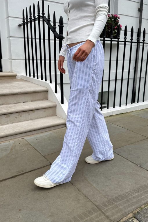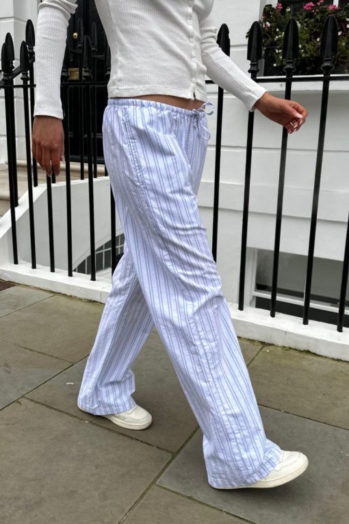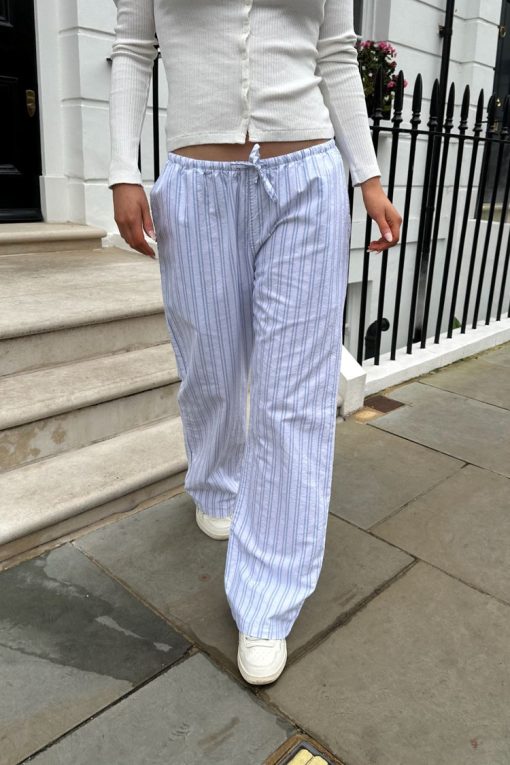 Brandy Melville Women’s Anastasia Pants | Light Blue With White Vertical Stripes