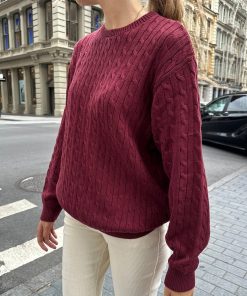 Cozy relaxed thick cable knit drop shoulder sweater with ribbed trimmings and slight boatneck collar. Fabrics: 55% acrylic, 45% cotton Measurement: 29″ (74 cm) length, 28″ (71 cm) bust Made in: China