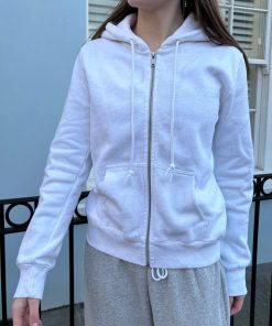 Basic, zip-up hoodie in burgundy with two pockets and a drawstring hood.Fabrics: 70% cotton, 30% polyesterMeasurements: 24″ (61 cm) length, 22″ (57 cm) bustMade In: China