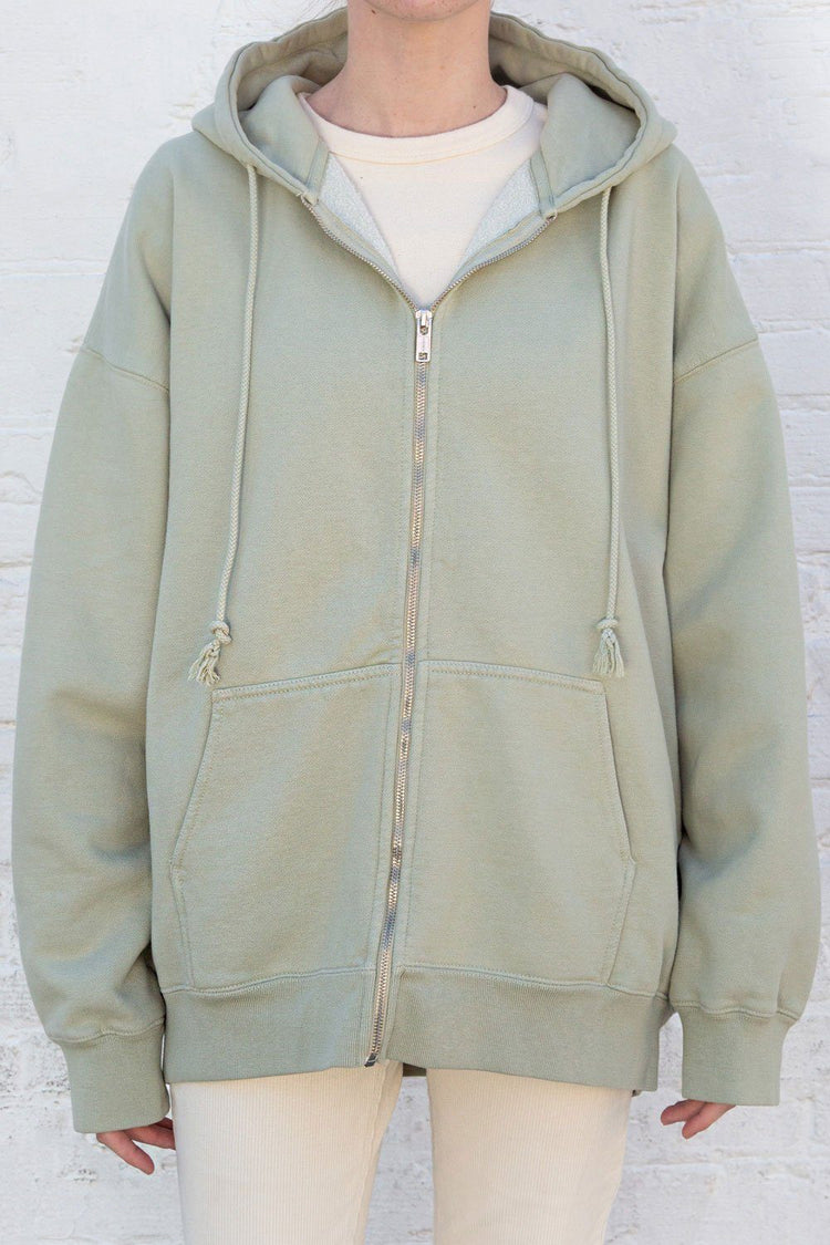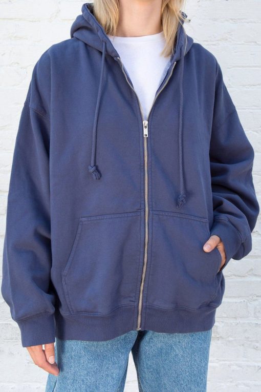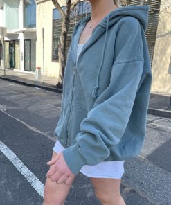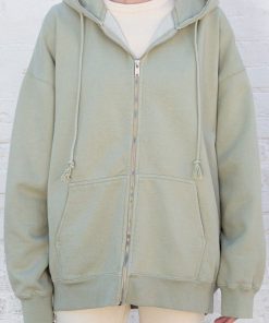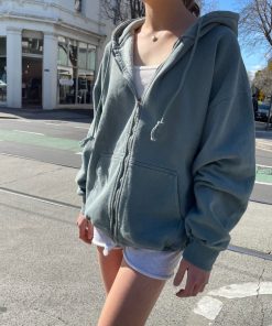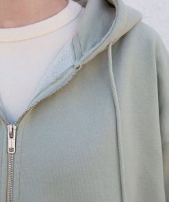 Basic zip-up hoodie with two pockets and a drawstring hood. Fabrics: 70% cotton, 30% polyesterMeasurements: Oversized Fit: 30″ (76 cm) length, 26″ (66 cm) bustMade In: China