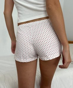 Brandy Melville Women’s Emery Heart Sweatshorts | White With Red Hearts
