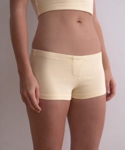 Butter yellow soft cotton boxer style underwear with elastic waistband.All intimates are final sale.Fabrics: 96% cotton, 4% elastaneMeasurement: 6.5″ (16.5 cm) rise, 25″ (64 cm) waist (stretches)Made in: Europe