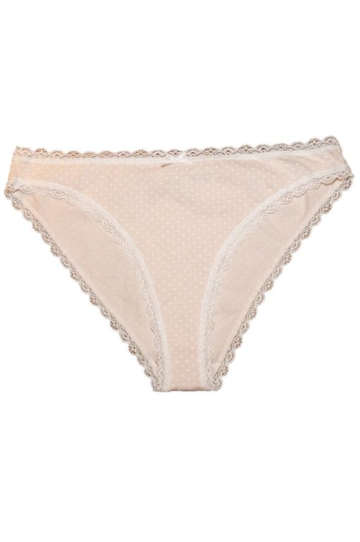 Soft, polka dot, cotton underwear with an elastic lace waistband, lace trim and a bow.All intimates are final sale.Fabrics: 100% cotton Measurement: 8.5″ (22cm) rise, 24″(62cm) waist (stretches)Made in: Italy