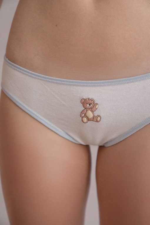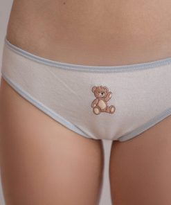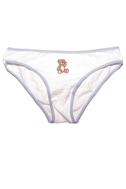 Soft cotton white undies with a scallop elastic, stretchy trim, teddy bear graphic. All intimates are final sale.Fabrics: 96% cotton, 4% elastaneMeasurement: 8″ (20cm) rise, 20″ (51cm)waist (stretches)Made in: Italy