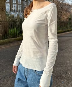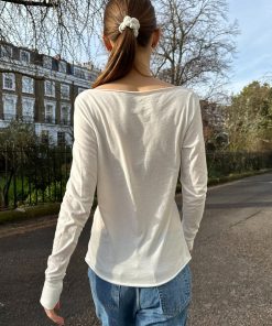 Wide scoop neck, long sleeve top with a lace trim.Fabrics: 100% CottonMeasurement: 16.5 (42 cm) length, 14″ (36 cm) bustMade in: China