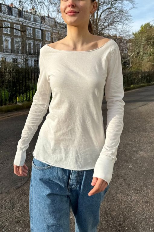 Wide scoop neck, long sleeve top with a lace trim.Fabrics: 100% CottonMeasurement: 16.5 (42 cm) length, 14″ (36 cm) bustMade in: China