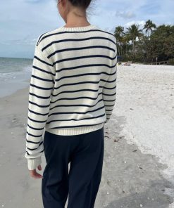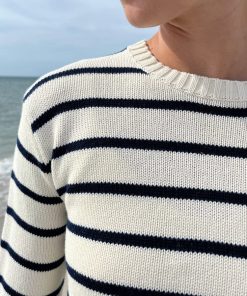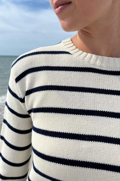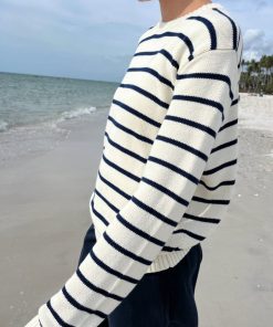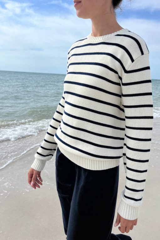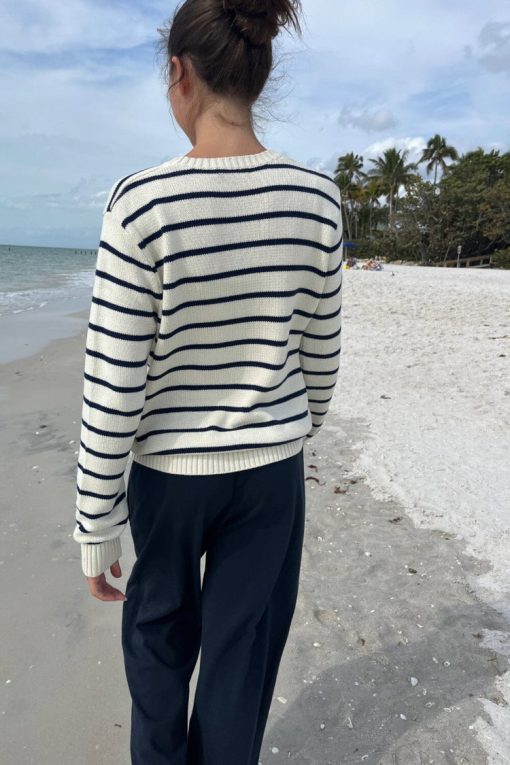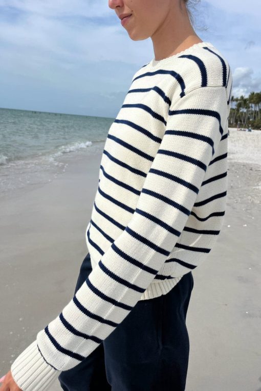 Brandy Melville Women’s Martha Cotton Thin Stripe Sweater | Ivory With Navy Blue Stripes