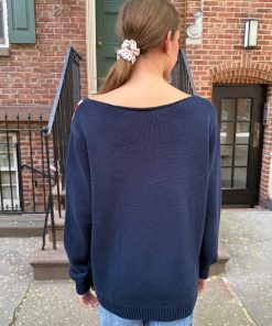 Lightweight, short, wide-neck, off-the-shoulder cotton sweaters in navy blue with the UK flagFabrics: 100% cottonMeasurement: 26″ (67 cm) length, 21″ (53 cm) bust Made in: Italy