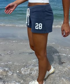 Soft cotton faded blue shorts with white drawstring and 28 printed in white on the leg.Fabrics: 100% cottonMeasurement: 9″ (23 cm) rise, 2″ (5 cm) inseam, 30″ (76 cm) waistMade in: China