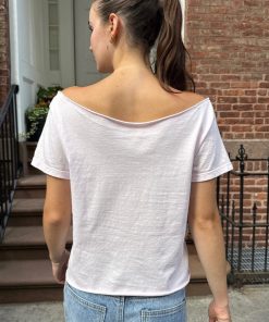 Soft and lightweight cropped wide neck cotton top with raw hem. Fabrics: 100% cotton Measurement: 16.5″ (42 cm) length, 17″ (43 cm) bust Made in: Europe