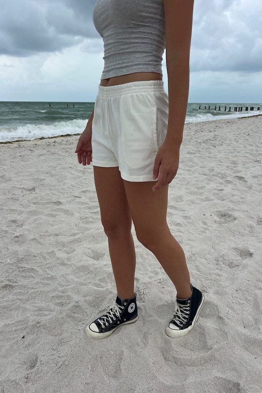 Soft cotton sweatshorts with side pockets and an elastic waistband. Fabrics: 100% cotton Measurement: 14″ (35 cm) rise, 24″ (61 cm) waist, 1″ (3 cm) inseamMade in: Italy