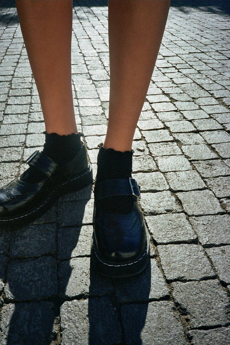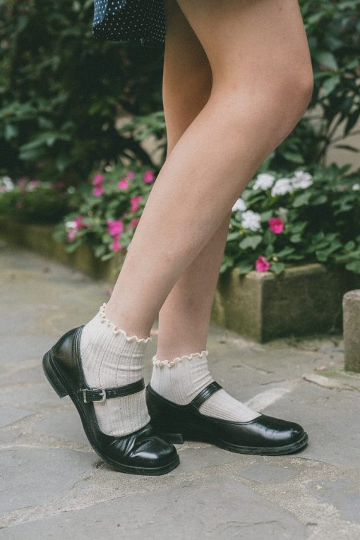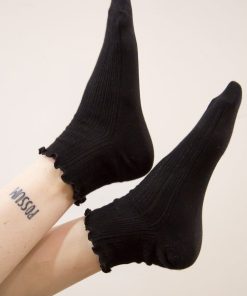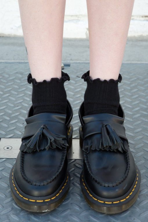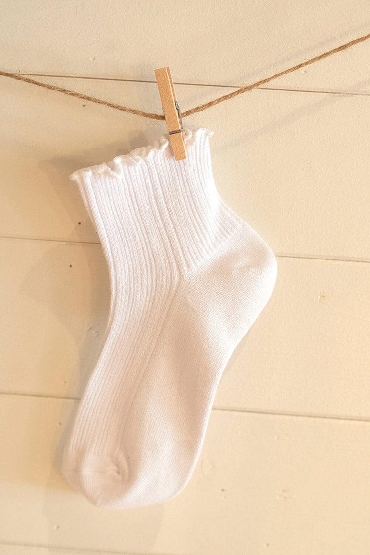 Classic, ankle socks with a ruffled hem and ribbed detailing.All accessories are final sale.Fabrics: 80% cotton, 20% spandexMeasurement: One sizeMade in: China