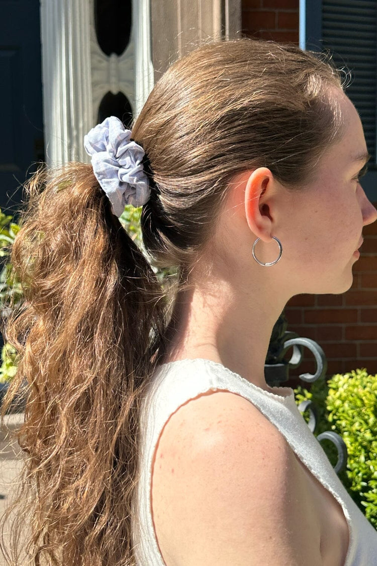 Classic, striped “scrunchie” hair tie.All accessories are final sale.Fabrics: 100% cottonMeasurements: 4″ (10 cm) diameter (stretches)Made in: China