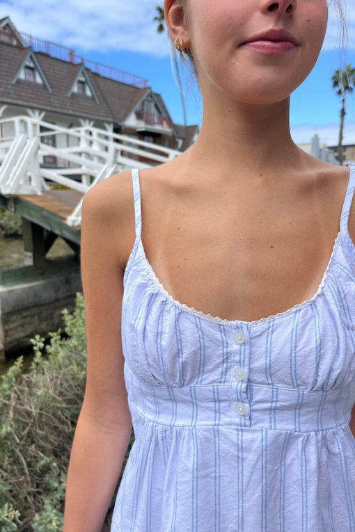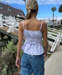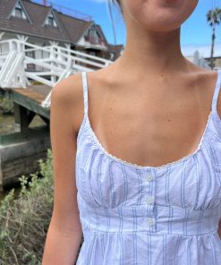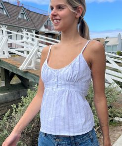 Brandy Melville Women’s Tiffany Striped Top | White With Double Blue Stripes