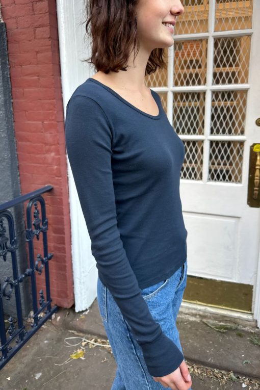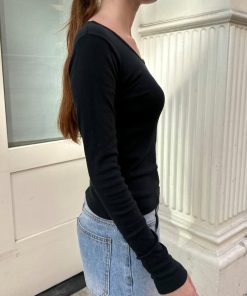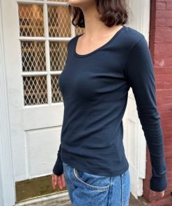 Fitted long sleeve top with a scoop neck.Fabrics: 100% cottonMeasurement: 18″ (46 cm) length, 16″ (41 cm) bustMade In: Europe