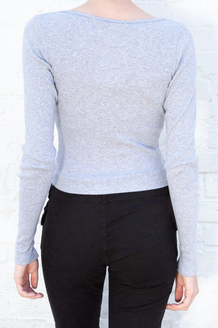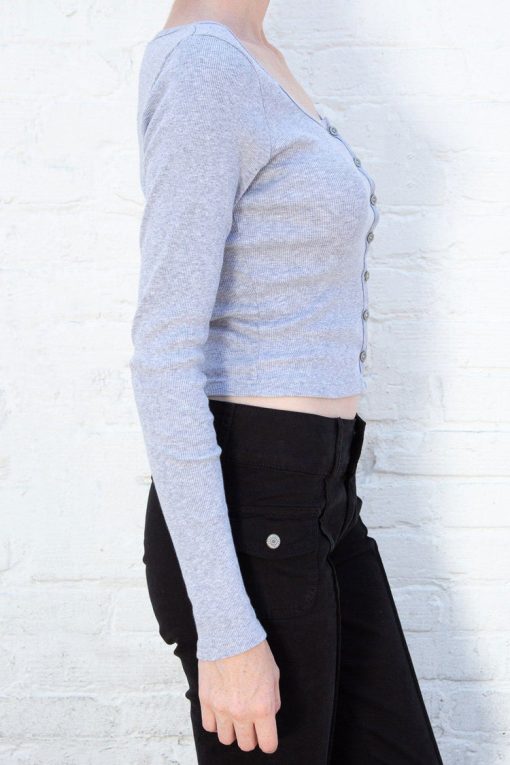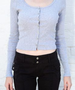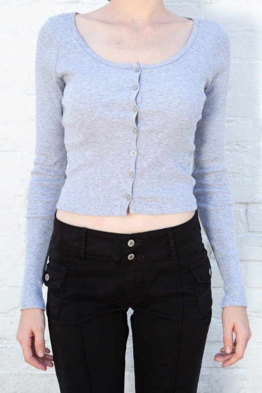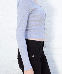Fitted, ribbed crop top with long sleeves, a scoop neck and button closure.Fabrics: 100% cottonMeasurement: 16″ (41cm) length, 15″ (38cm) bustMade In: Italy
