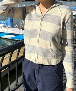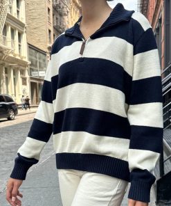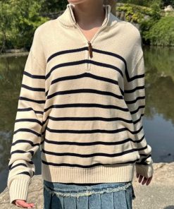 Brandy Melville Women’s Aleah Cotton Stripe Sweater | Ivory Navy Blue Stripes (do Not Enable) Ok